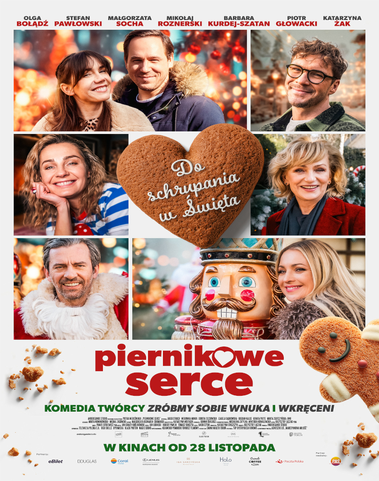 “Piernikowe serce” to świąteczna komedia romantyczna z dużą dawką humoru, emocji i aromatu pierników! Pachnie cynamonem, rozbrzmiewa śmiechem i rozgrzewa serca nawet najbardziej skłóconych bohaterów. Justyna i Czarek wracają z synem do rodzinnego domu w Toruniu, gdzie czeka ich nie tylko konfrontacja z przeszłością, ale też szansa na nowy początek. Dagmara, próbuje spełnić marzenie zmarłego ojca i otworzyć kawiarnię, choć życie nieustannie rzuca jej kłody pod nogi. Samanta i Paweł, sąsiedzi z temperamentem, wnoszą do tej układanki mnóstwo koloru, energii i nieoczekiwanych zwrotów akcji. To film o rodzinie, miłości i drugich szansach. O tym, że nawet jeśli wszystko się sypie, święta potrafią posklejać to, co najważniejsze.Bo przecież w święta wszystko jest możliwe — nawet cud.