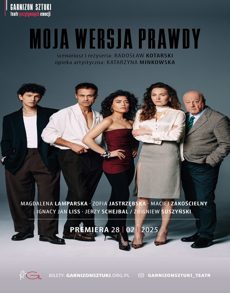 “Moja wersja prawdy” to komediodramat o czwórce rodzeństwa, które spotyka się w mieszkaniu ojca w dniu jego pogrzebu, by uporządkować pamiątki po zmarłym i podjąć decyzję, co zrobić ze spadkiem. Tymczasem odkrywają, że mieszkanie zostało kompletnie splądrowane. Sprawa jest tym dziwniejsza, że nie widać śladów włamania, a nic cennego nie zginęło. Czego szukał intruz? I czy to “coś” znalazł? Spotkanie zamienia się w drobiazgowe śledztwo, które nieoczekiwanie wyzwala ekstremalne emocje, ożywają wzajemne animozje i niełatwe wspomnienia. Rodzinne tajemnice wychodzą na jaw. Z badań Harvard Study of Adult Development wynika, że to bliskie więzi – zarówno rodzinne, jak i społeczne – są kluczowe dla naszego samopoczucia i zdrowia, dla szczęścia i długowieczności. Mimo, że większość z nas deklaruje, że rodzina jest ważna, a nawet najważniejszą, to coraz więcej osób doświadcza samotności, nawet wśród rodziny czy przyjaciół. Dlaczego?
