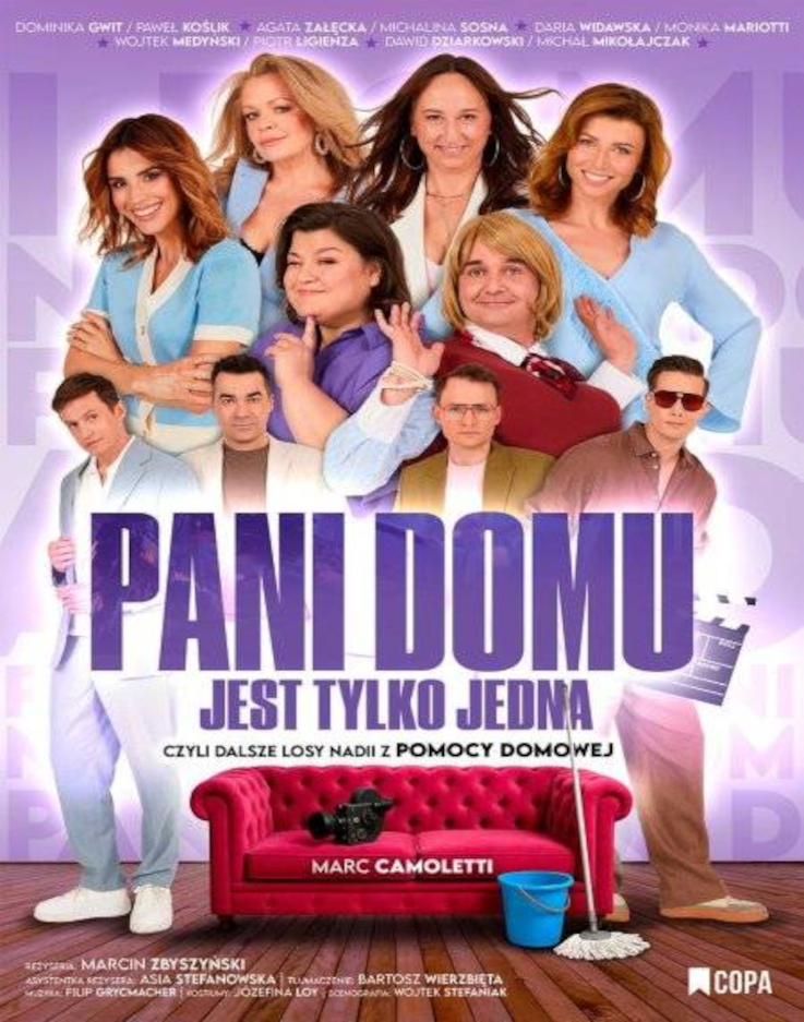 Pani domu jest tylko jedna – to wystrzałowa farsa mistrza gatunku Marca Camolettiego w tłumaczeniu Bartosza Wierzbięty (Pomoc Domowa, Boeing Boeing). Kolejna część przygód Nadii – szalonej Pomocy Domowej, która tym razem stanie się… aktorką! Miejsce akcji to domek letniskowy pewnego producenta filmowego, który przez przypadek zaprosi na weekend swoją żonę, kochankę i najlepszego przyjaciela. By ratować sytuację Nadia stanie się kochanką , a prawdziwa kochanka dostanie do rąk… mopa! Producent filmowy będzie w potrzasku, choć jak się okaże , nie tylko on skrywać będzie miłosne tajemnice… Kto jest kim? Czy romans się wyda? Kto kogo zdradza i czy Nadia znow uratuje sytuację? Tego dowiecie się oglądając “Pani domu jest tylko jedna”! Czas umili Wam gwiazdorska obsada!