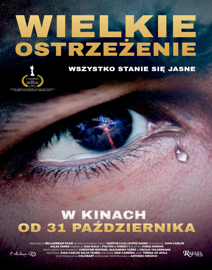 Co by się stało, gdyby można było zobaczyć swoje życie z innej perspektywy? Zarówno dobre, jak i złe czyny wraz ze wszystkimi ich konsekwencjami? W pełnym świetle prawdy? Tak jak widzi je… Bóg? Jak wpłynęłoby to na twoje dalsze życie, wybory, relacje z innymi? Wielkie ostrzeżenie to więcej niż film – to duchowe doświadczenie! Przeżycie, które zmienia spojrzenie na siebie i prowokuje do głębokiej refleksji. Obraz Juana Tameza opowiada o ludziach, którzy nagle i niespodziewanie doświadczyli łaski “oświecenia sumienia”, czyli stanu, gdy w jednej chwili zobaczyli wszystkie popełnione w życiu grzechy i ich skutki oraz poznali, w jakim miejscu drogi do zbawienia czy też zatracenia znajdują się obecnie. To bolesne, a jednocześnie oczyszczające wydarzenie, pokazujące prawdę o życiu w pełnym świetle, radykalnie odmieniło bohaterów filmu. Jednak ich nieprawdopodobna historia to zaledwie zapowiedź… Twórcy filmu sięgają do mistycznych przekazów zapowiadających globalne, nadprzyrodzone wydarzenie, mające objąć całą ludzkość. Według tych proroctw nadejdzie jedna chwila, w której wszyscy ludzie na świecie, niezależnie od wyznania, otrzymają łaskę “oświecenia sumienia”. Ten moment nazwano “wielkim ostrzeżeniem”.